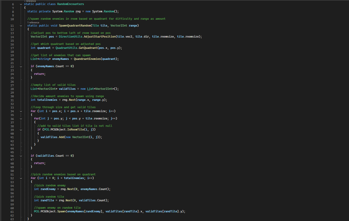 Enemy spawns are based off of quadrants of the level. Amount and type of enemies are spawned based on quadrant and room size