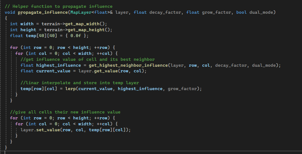 Code snippet of propegation